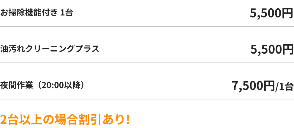 原則当日の追加料金は発生しません。(お客様からのご要望で掃除カ所が増えた場合別途料金をご案内致します)
