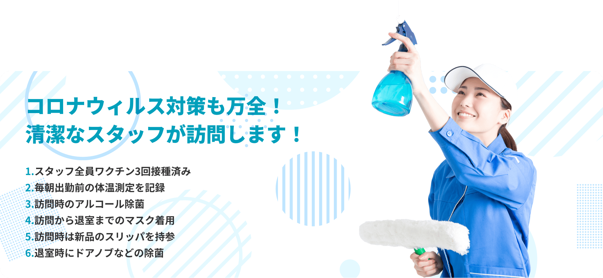 お約束させて頂いた日時にお伺いし、クリーニング作業を行います。